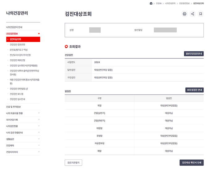 대상 여부가 확인되면, 해당 연도에 무료로 국가건강검진을 받을 수 있으니 꼭 확인하시기 바랍니다.