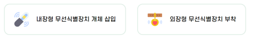 반려견 등록 방법은 크게 두 가지로 나뉘는데 내장형 무선식별장치와 외장형 무선식별장치입니다.
