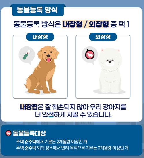 외부 장치는 상대적으로 쉽게 분실될 수 있으나, 간단하고 빠르게 반려견을 등록할 수 있는 장점이 있습니다.