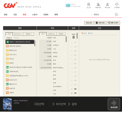 원하는 극장을 선택 하고 날짜를 선택해 줍니다.