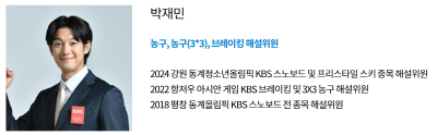 브레이킹 종목에서는 강승화 캐스터가 나섭니다. 이들의 해설은 브레이킹 팬들에게 큰 기대를 모으고 있습니다.